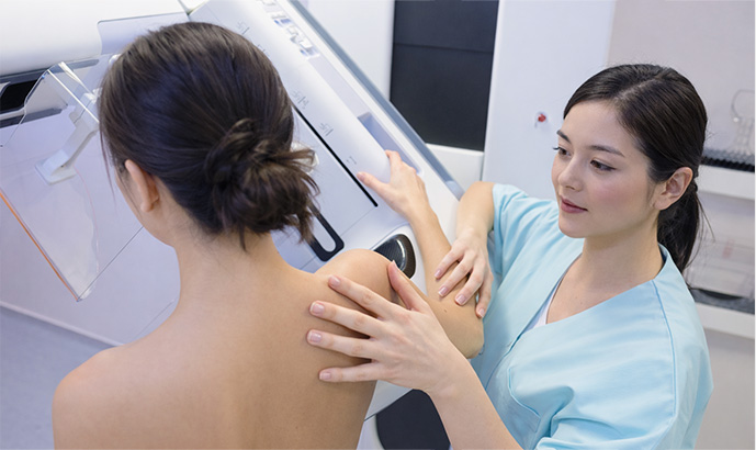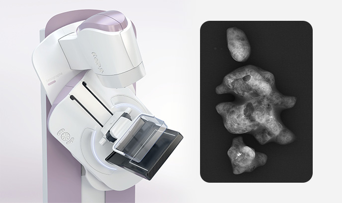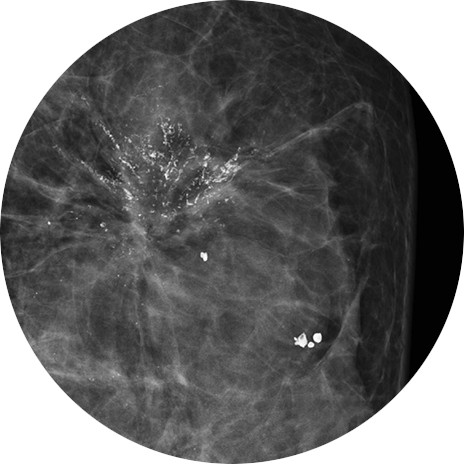 유방촬영술에서 악성이 의심되는 미세석회화가 발견되면, 석회화의 분포와 모양을 보다 정확히 평가하기 위해 확대촬영을 시행합니다.