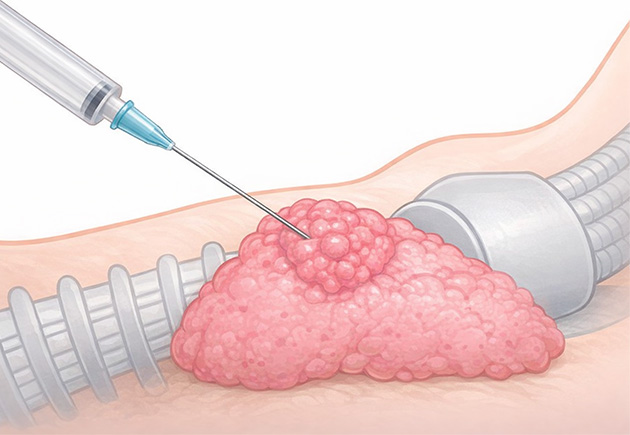 가느다란 주사바늘을 이용해 갑상선 결절에서 소량의 세포를 채취하여